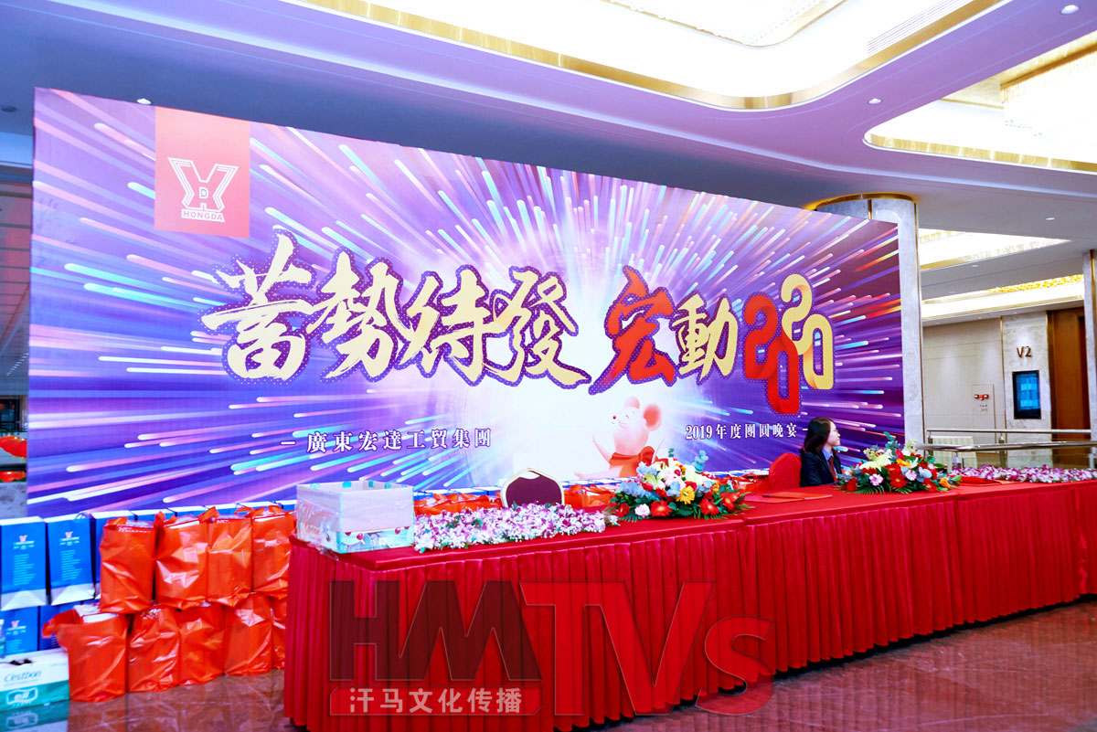2020年1月13日東莞宏達(dá)集團(tuán)年在東莞會(huì)展酒店舉行,整場活動(dòng)布置全程由汗馬文化團(tuán)隊(duì)執(zhí)行,活動(dòng)現(xiàn)場布置、東莞燈光音響、東莞攝影攝像